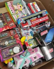 • Contents: Assorted Target toys including action figures, dolls, puzzles, crafts, STEM kits, and board games